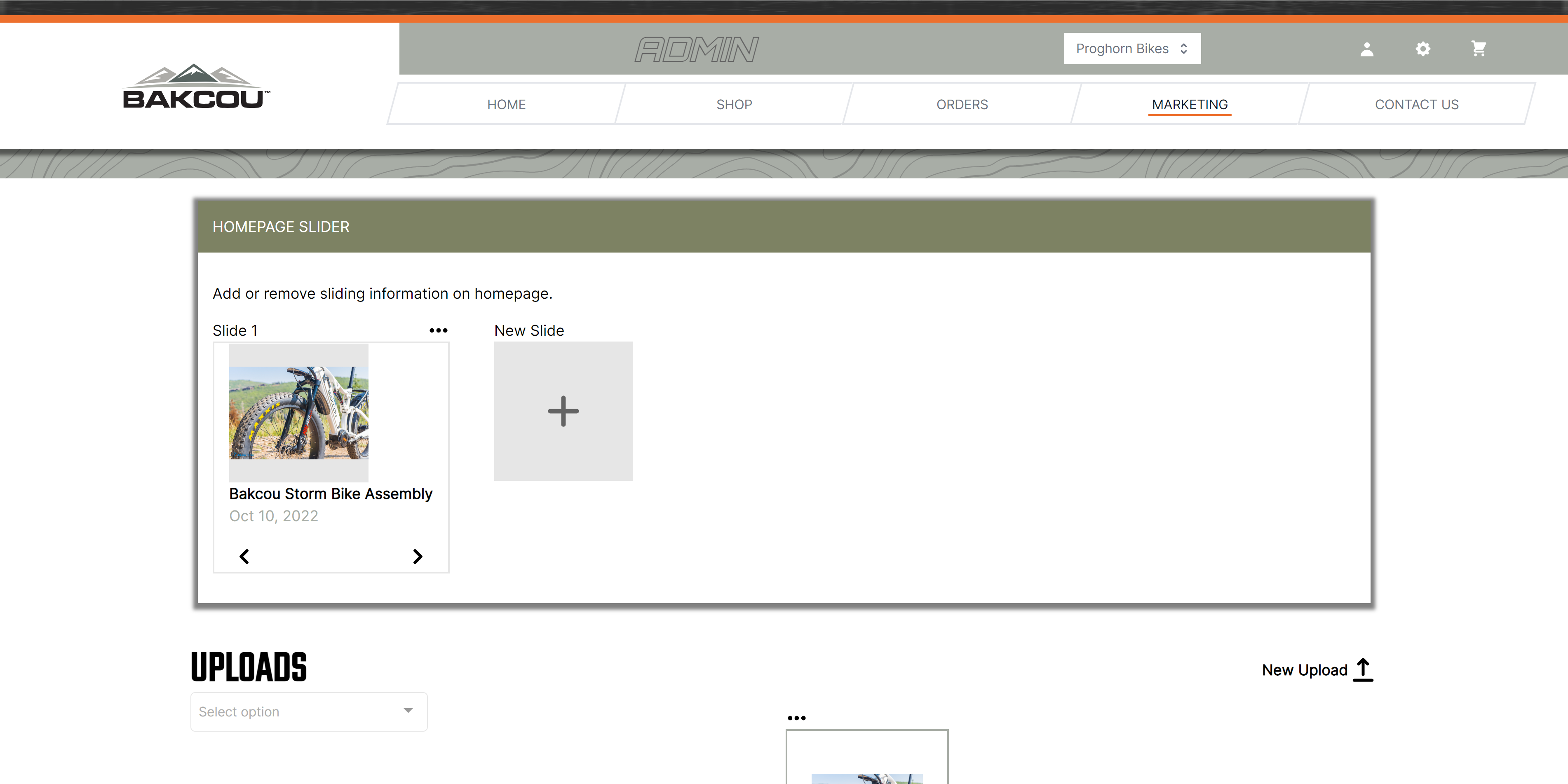 When adding marketing materials to the slider, you are able to choose an existing file upload OR create a brand new upload.&#x20;
